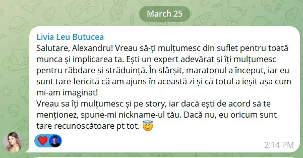 Tocmai pentru că timpul e limitat, ai nevoie de claritate și structură. În loc să pierzi săptămâni sau luni încercând singur, în 30-45 minute poți avea deja un plan concret cu pașii tăi următori. E cea mai bună investiție de timp pe care o poți face acum.